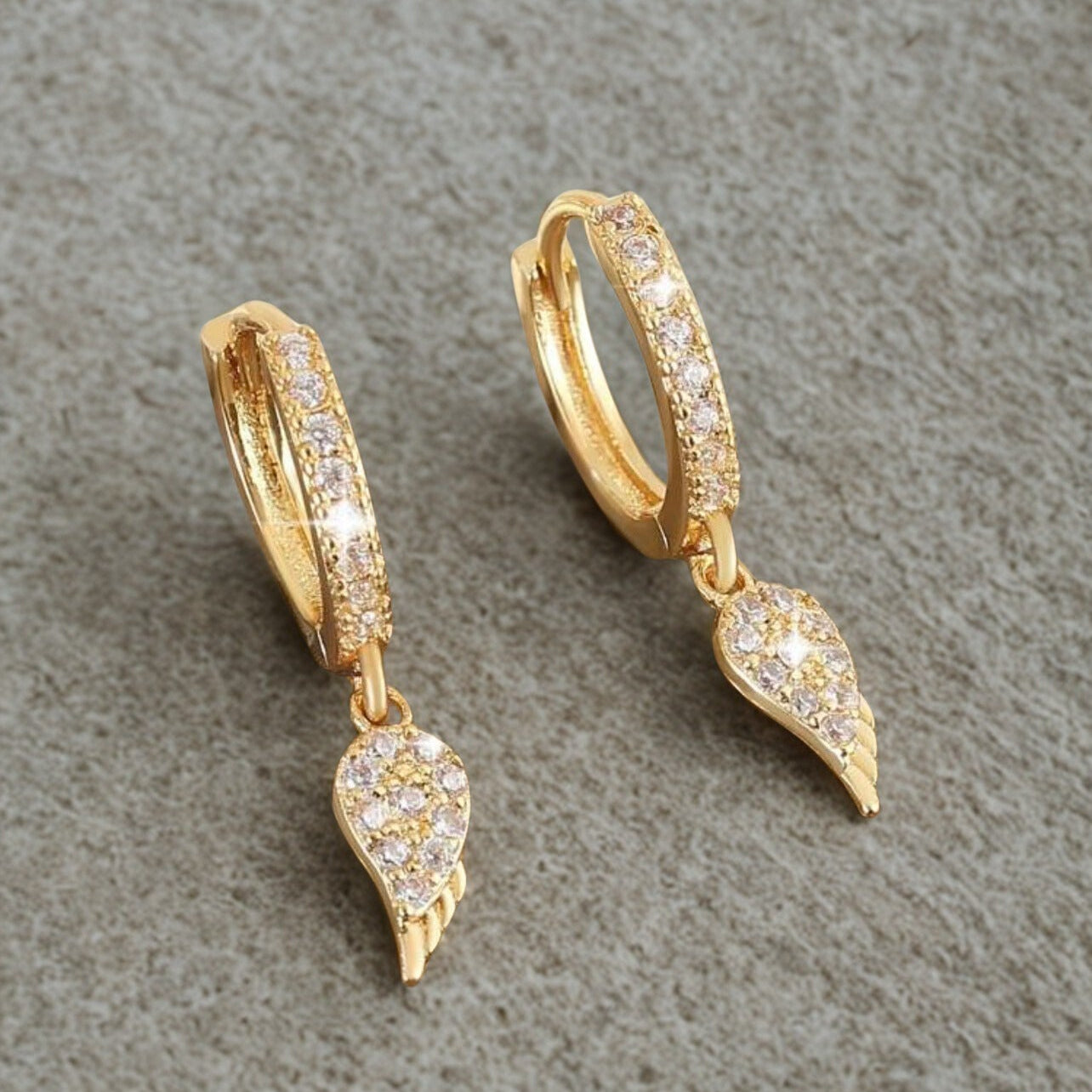 Elegant wing-shaped earrings crafted in gold and adorned with sparkling diamonds. A timeless design that blends luxury and lightness – perfect for both everyday wear and special occasions.